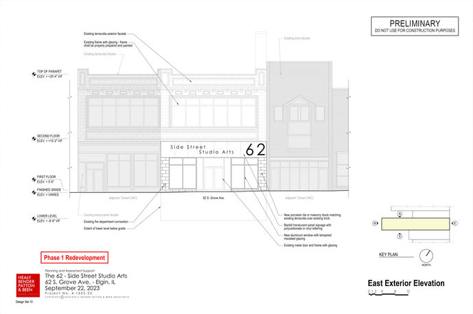 Gracias al generoso apoyo de Reva & La Fundación David Logan, Side Street Studio Arts, NFP se está embarcando en una transición emocionante: ¡mudarse a una ubicación permanente en el centro de Elgin! Nuestro futuro hogar, ubicado en 62 S. Grove Ave., permitirá que nuestros programas de exhibición, actuación, educación y defensa vivan bajo un mismo techo, ofrecerá mayor accesibilidad para todos y cuadriplicará nuestro espacio.